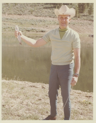 Thomas Stafford on a fishing trip with friends. Date unknown.