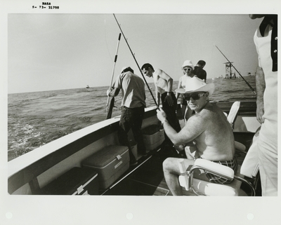 Thomas Stafford fishing with cosmonauts in 1973.