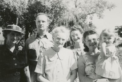 Pictured left to right: Mary Ellen (Patten) Stafford, Thomas P. Stafford, Sarah Ethel (Patten) Staker, (unknown).
