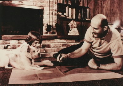 Thomas Stafford with his daughter, Karin, and the family dog. Date unknown.