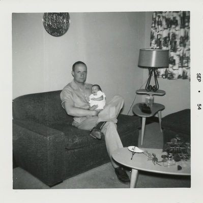 Thomas Stafford holding his daugher, Dionne, in 1954.