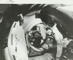 ASTP ON-BOARD PHOTO – Astronaut Thomas P. Stafford (in foreground) and Cosmonaut Aleksey A. Leonov make their historic handshake in space on July 17, 1975 during the joint U.S.-USSR Apollo-Soyuz Test Project docking in Earth orbit mission. This picture was made from a frame of 16mm motion picture film.