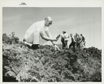 Astronaut Thomas P. Stafford examining a piece of lava at sunset crater near flagstaff Ariz. during a geological training expedition.