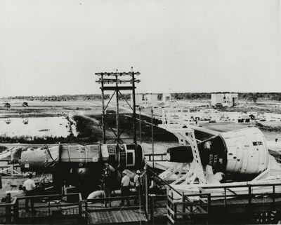 Gemini and Agena target vehicle are prepared for docking in earthbound checkouts before the real thing occurs in space in October. National Aeronautics and Space Administration personnel at Cape Kennedy are preparing the two craft for testing in both docked and undocked modes. The Agena will be launched about 90 minutes before the Gemini spacecraft containing two astronauts is show aloft. The astronauts then will attempt to maneuver the Gemini to rendezvous and dock with the Agena.
