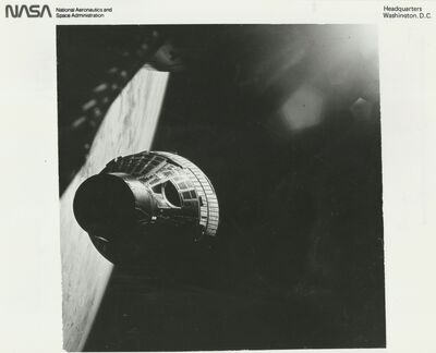 ON BOARD THE GEMINI VII SPACECRAFT – This view of the National Aeronautic and Space Administration’s Gemini VI spacecraft was taken from the Gemini VII spacecraft during rendezvous of the two on December 15, 1965. The photograph was taken with a 70mm Hasselblad camera using Kodak S.O. 217 MS film. Crew members on the Gemini VII spacecraft are Astronaut Frank Borman, command pilot, and Astronaut James A. Lovell, pilot. Crew members on board the Gemini VI are Astronauts Walter M. Schirra, Jr., command pilot, and Thomas P. Stafford, pilot.