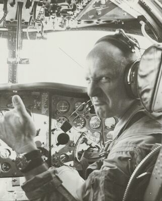 CAPE KENNEDY, FLA. – Astronaut Thomas P. Stafford, pilot of the National Aeronautics and Space Administration’s Gemini 6 space flight, serves as co-pilot of the Air Force plane flying the Gemini 6 crew from Bermuda to Cape Kennedy. Astronauts Stafford and Walter M. Schirra, Jr., are scheduled for three days are debriefing at the Kennedy Space Center before proceeding on to the Manned Spaceflight Center at Houston. The Gemini 6 spacecraft splashed down about 12 miles from aircraft carrier U.S.S. Wasp in the western Atlantic recovery area at 10:29 a.m. (EST) on December 16, 1965 after a highly successful 25 hr. 52 min. mission in space.