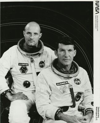 A photo of Gemini VI Astronauts Thomas P. Stafford (left) and Wally Schirra, Jr.