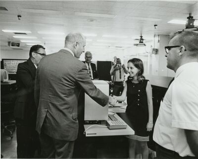 Col. Stafford meets Rhoda Hornstein of the Data Operations Branch.