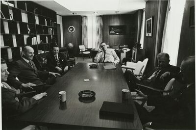 An interesting point is made by Mr. Ozro Covington, Director of Manned Flight Support, to Col. Stafford at the roundtable discussions prior to the Award Ceremonies.