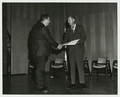 David O. Bell, formerly of the Defense Contract Admin. Services in Los Angeles and now of GSFC's Quality Engr. Br. is awarded a Silver Snoopy Pin, Certificated and a letter by Col. Stafford.