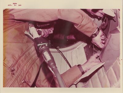 (17-19 July 1975) --- ASTP American crew members inside the hatchway leading from the Apollo Docking Module (DM) to the Soyuz Orbital Module (OM) during the joint U.S.-USSR Apollo Soyuz Test Project (ASTP).